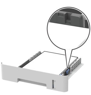 Load the paper stack with the printable side facedown, and then make sure that the side guides fit snugly against the paper.