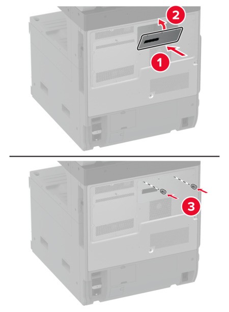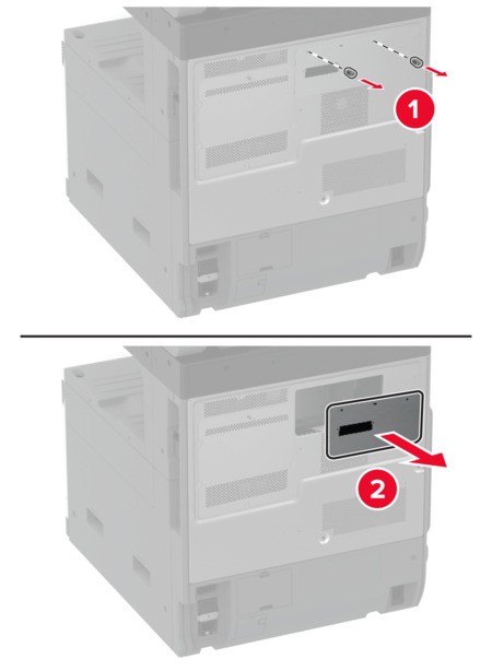 To avoid the risk of electrical shock, if you are accessing the controller board or installing optional hardware or memory devices sometime after setting up the printer, then turn the printer off, and unplug the power cord from the electrical outlet before continuing. If you have any other devices attached to the printer, then turn them off as well, and unplug any cables going into the printer.