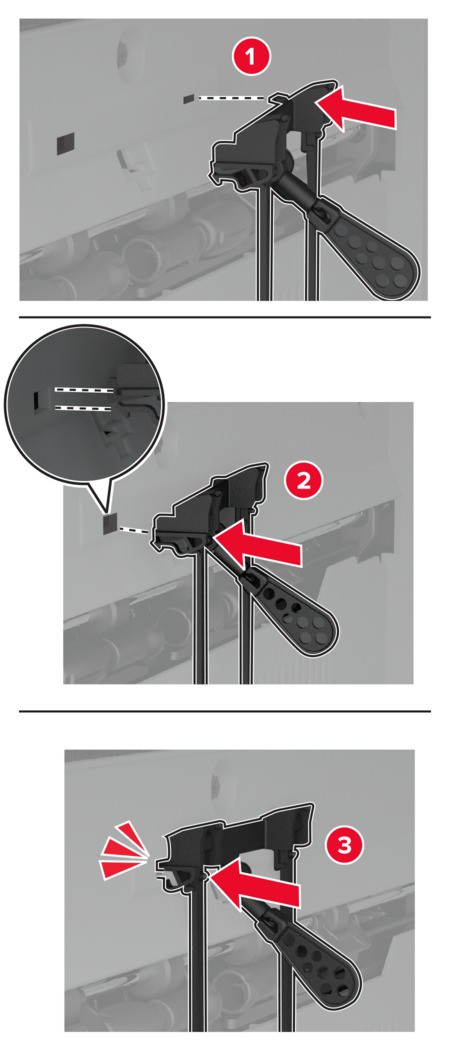 Unpack the new paper bail.Insert the new paper bail until itclicksinto place.