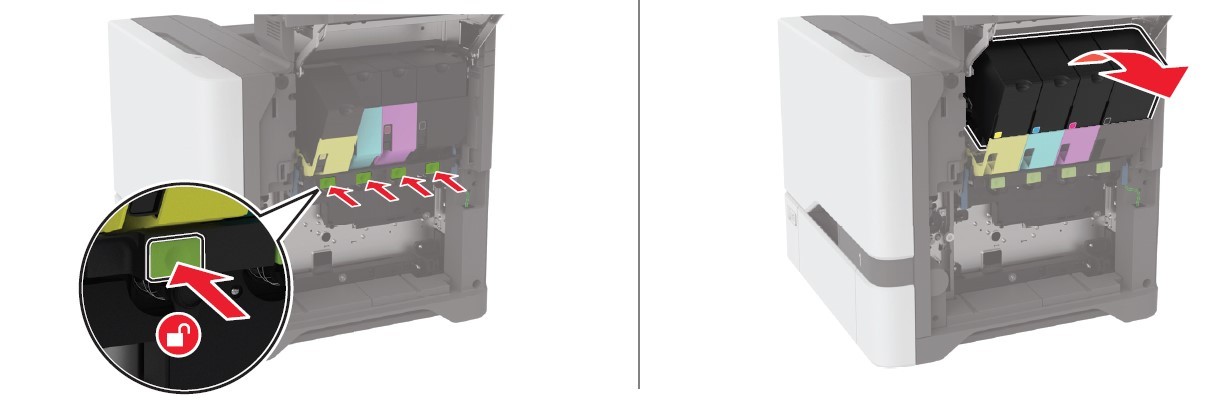 - Lightly shake the toner cartridge in all directions and place the toner cartridge back into the printer.