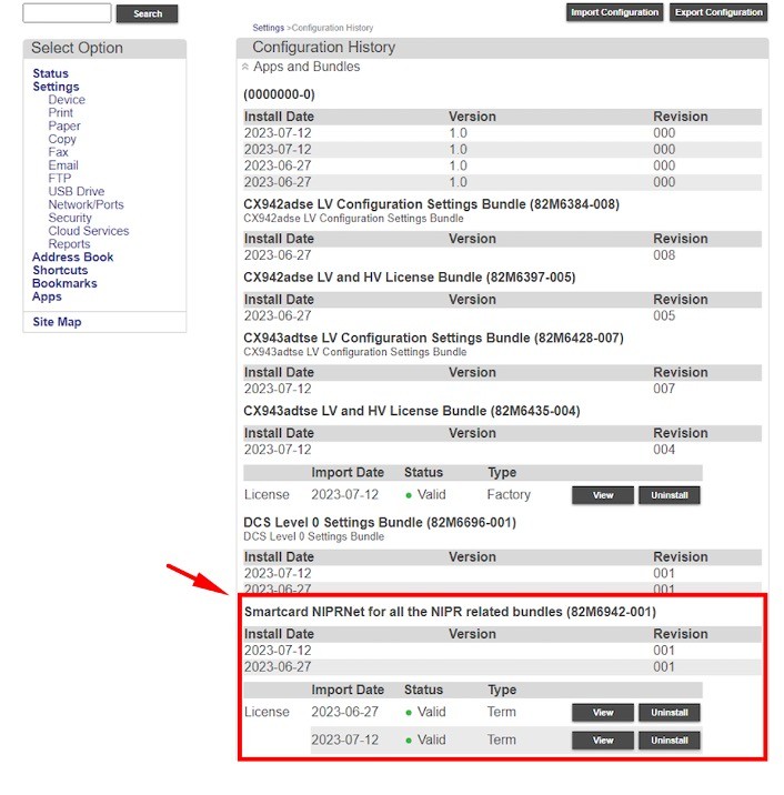Determining whether the printer has a NIPRNet or SIPRNet license