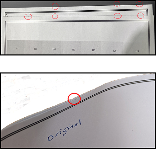 When using the ADF to scan or copy, the top of the page appears distorted or wavy, sometimes stretched or compressed.