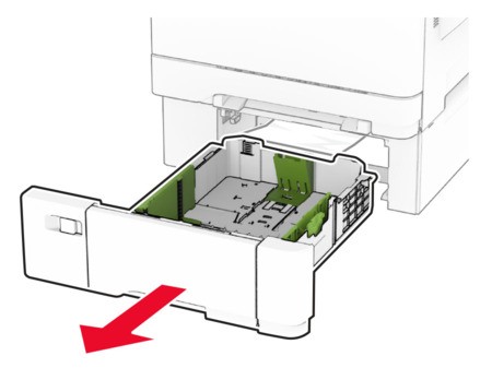- Remove paper from the multipurpose feeder, and then close it.Remove the tray.
