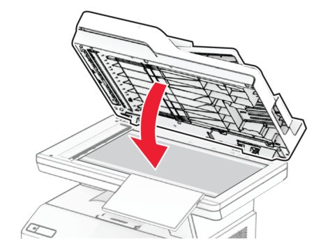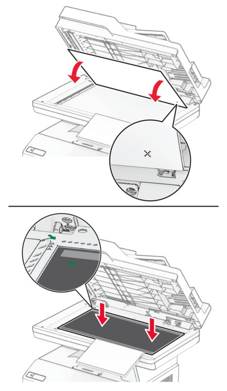 Open the scanner cover.Apply pressure to the scanner glass pad to secure it.