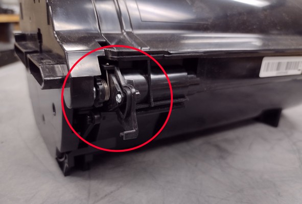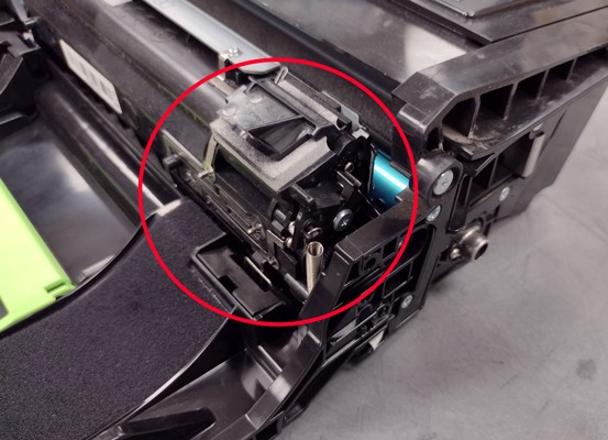 - Check the cartridge and imaging unit for damage in the toner port areas shown. Replace damaged supplies.