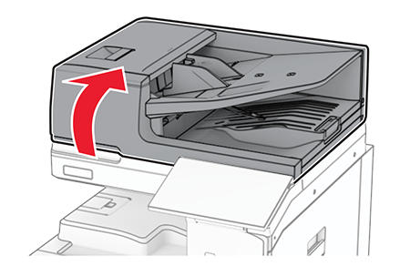Open door A1.Using the glass cleaner tool, wipe the ADF glass.