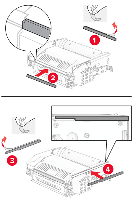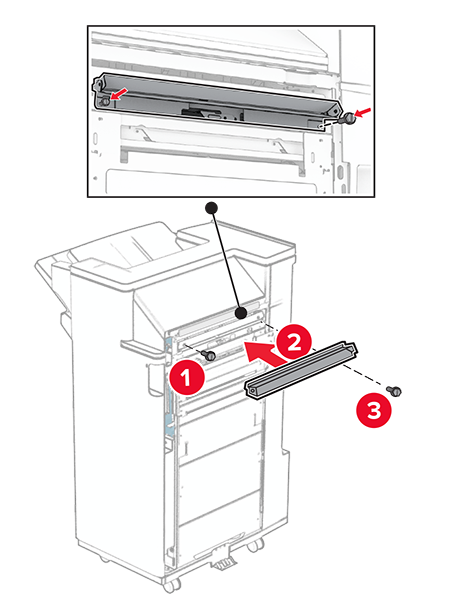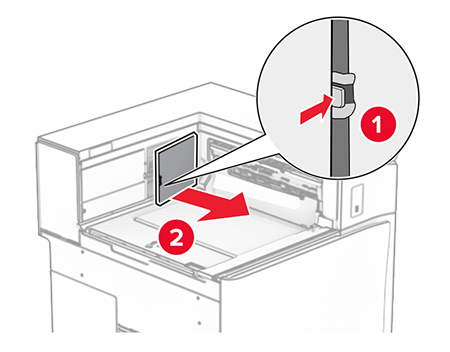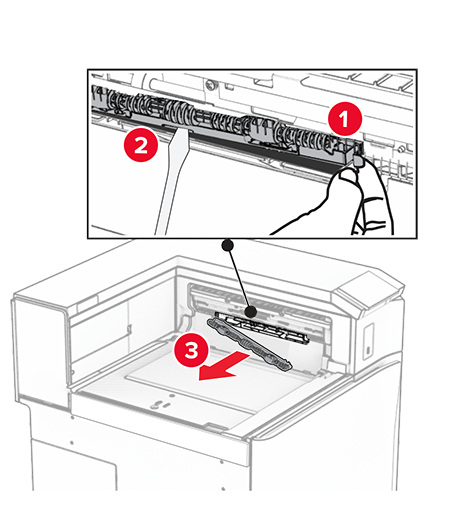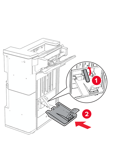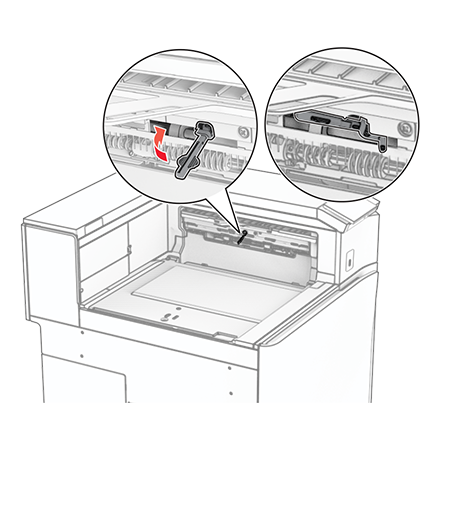 Before installing the option, place the exit bin flag into the closed position.When the option is removed, place the exit bin flag into the open position.