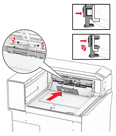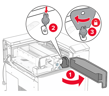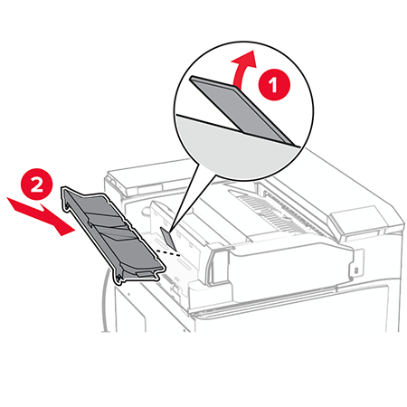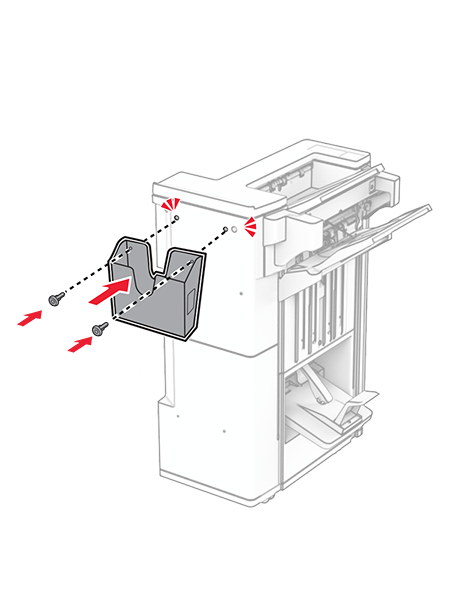 Close the finisher door.Raise the bin flap, and then align and attach the cover to the option.