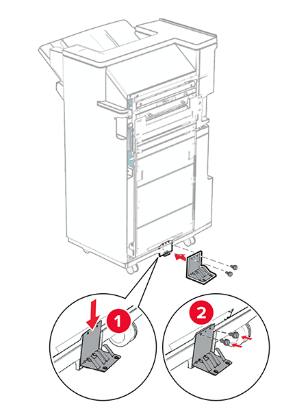 Unpack the booklet finisher, and then remove all the packing material.Attach the bracket to the finisher.