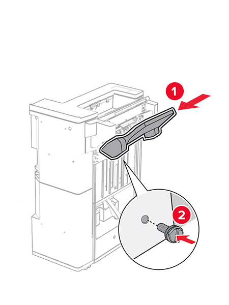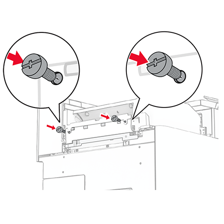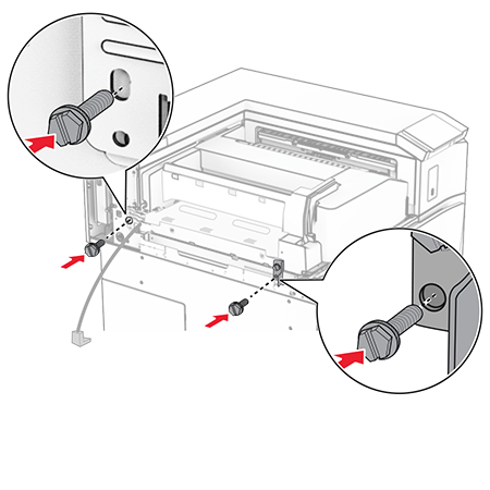 Lock the finisher to the printer, and then install the screw.