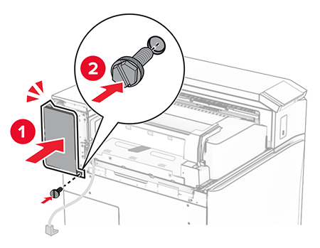 Close door F.Install the screws into the option.
