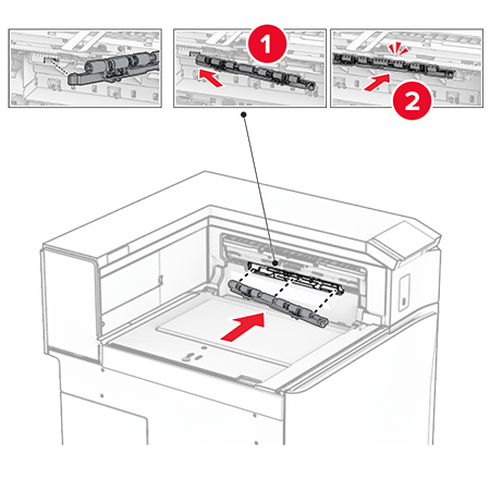 Insert the feed roller that came with the option until itclicksinto place.