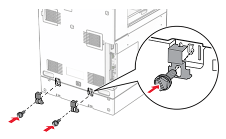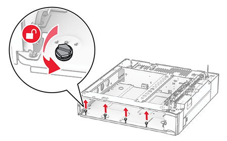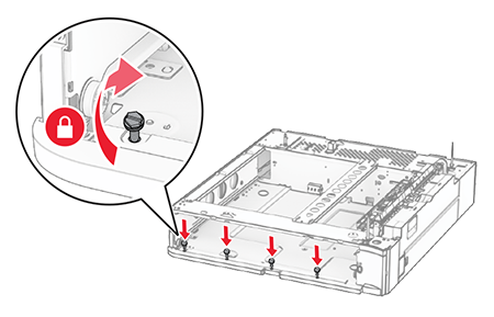 - This option must be always installed directly under the printer and must not be installed together with another optional 550-sheet tray.