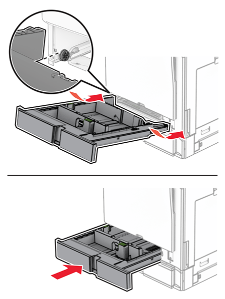 Installing the optional 550‑sheet tray