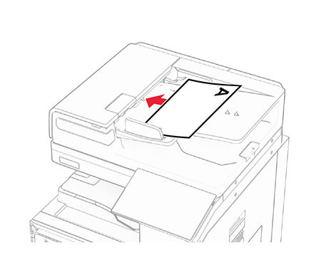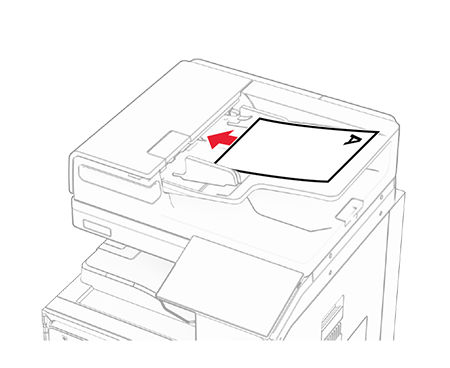 - Load an original document into the ADF tray faceup.For a document in landscape orientation, do either of the following:
