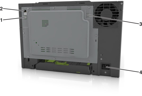 4 | Conector del cable de alimentación de la impresora | Conectar la impresora a una toma de alimentación eléctrica debidamente conectada a tierra. |
