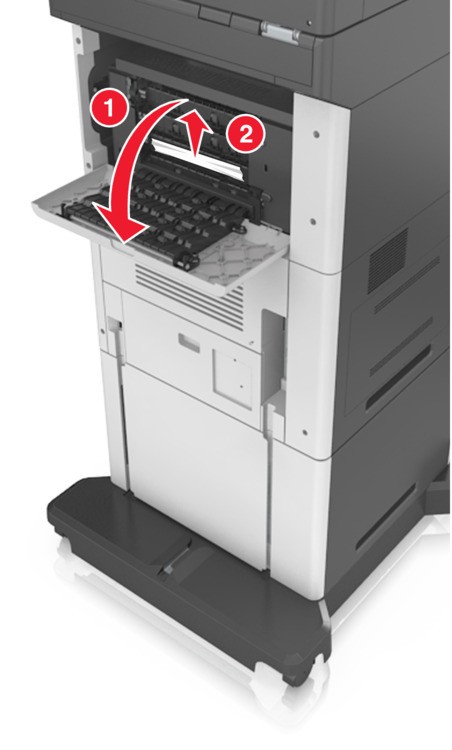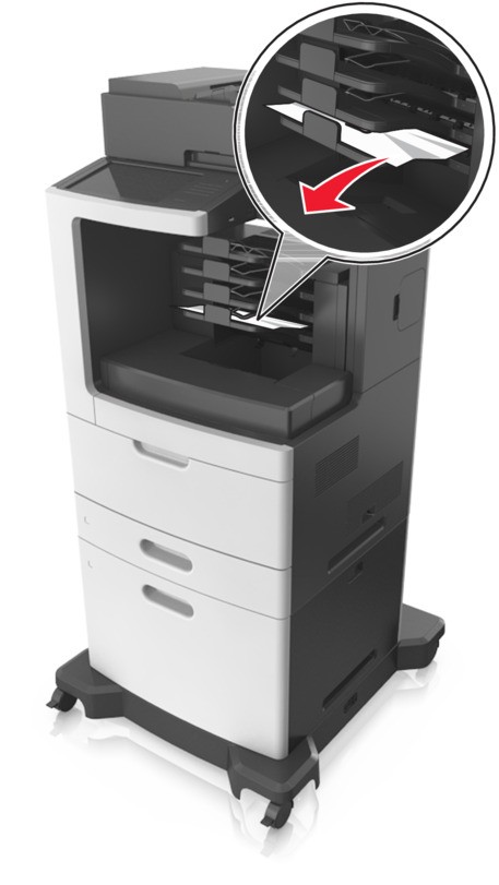 - Abra la puerta trasera del buzón y retire el papel atascado.Retire todos los fragmentos de papel.