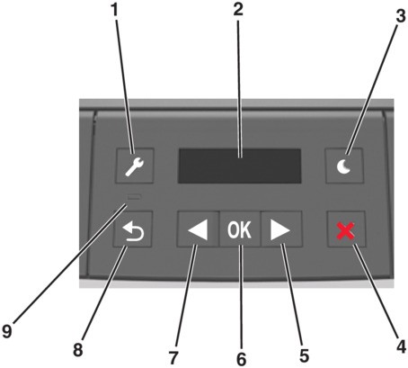 2 | Visualización | Ver las opciones de impresión, así como mensajes de estado y de error. |