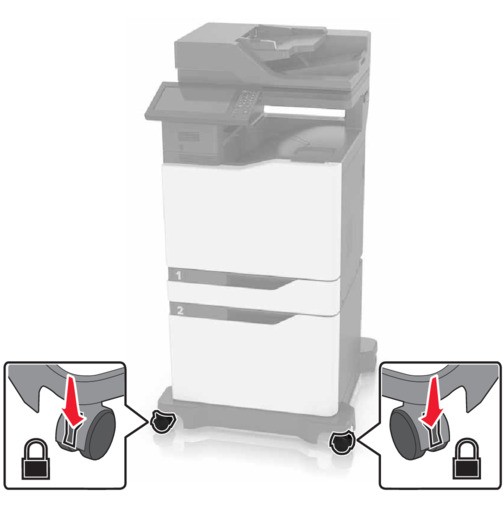 Para instalar uno o varios complementos en la impresora o MFP, puede que sea necesario utilizar una base con ruedas, mobiliario u otros elementos que eviten la inestabilidad del montaje y la consiguiente posibilidad de sufrir lesiones. Para obtener más información sobre las configuraciones compatibles, visite www.lexmark.com/multifunctionprinters.