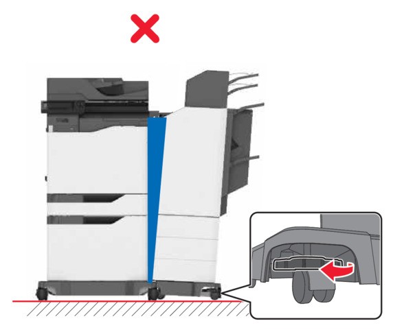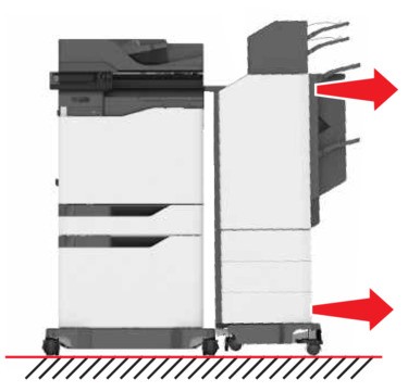 Para instalar uno o varios complementos en la impresora o MFP, puede que sea necesario utilizar una base con ruedas, mobiliario u otros elementos que eviten la inestabilidad del montaje y la consiguiente posibilidad de sufrir lesiones. Para obtener más información sobre las configuraciones compatibles, póngase en contacto con el establecimiento en el que adquirió la impresora.