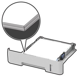 - No cargue demasiado papel. Asegúrese de que la altura de la pila no exceda el indicador de capacidad máxima de papel.