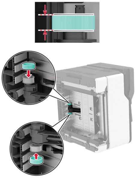 Desembale las nuevas gomas de los rodillos.Para evitar la contaminación, asegúrese de que tiene las manos limpias.Introduzca las nuevas gomas de los rodillos.