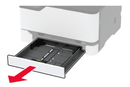 Tire de la bandeja del cartucho de impresión.