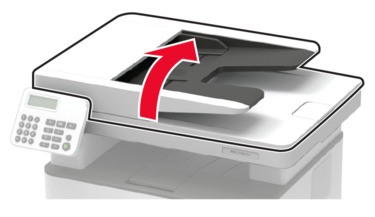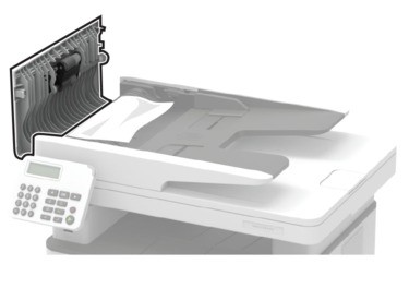 - Extraiga todos los documentos originales de la bandeja del ADF.Abra la cubierta del alimentador automático.Para evitar daños por descargas electrostáticas, toque cualquier elemento metálico expuesto de la impresora antes de tocar las zonas internas de la impresora o acceder a ellas.