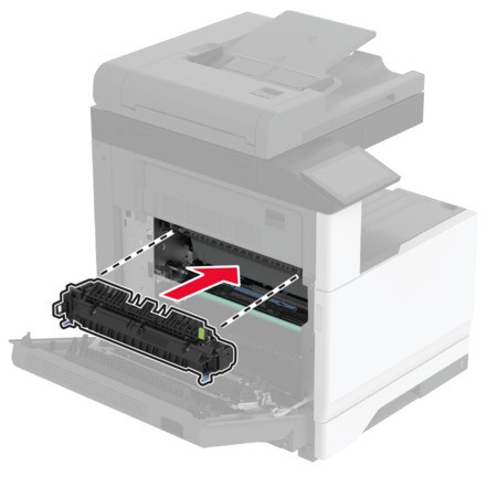 Desempaquete el nuevo fusor.Inserte el nuevo fusor.