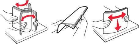 Flexione, airee y alise los bordes del papel antes de cargarlo.