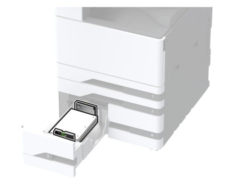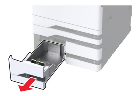 - Extraiga la bandeja.Para evitar atascos, no extraiga las bandejas mientras la impresora esté ocupada.