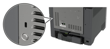 Coloque un bloqueo de seguridad en la impresora para evitar robos.
