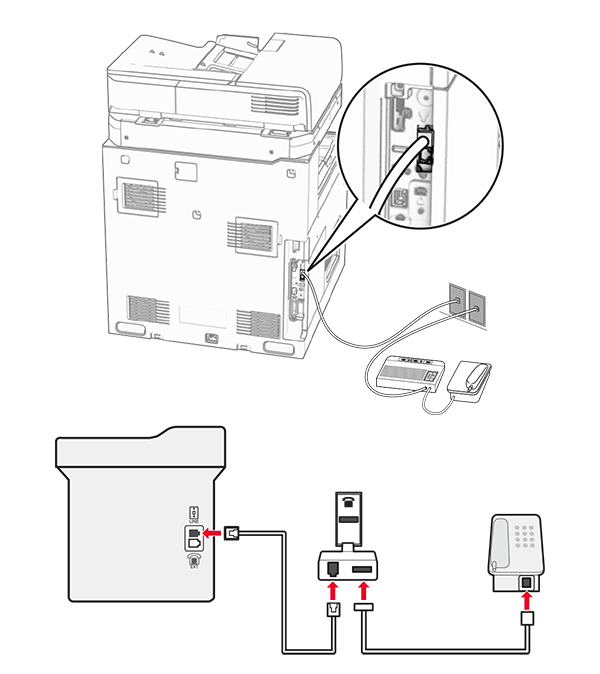 Connexion de l'imprimante à une prise murale non RJ‑11