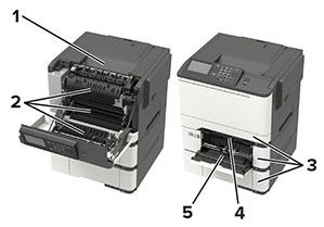 5 | Chargeur multifonction Disponible uniquement sur certains modèles d'imprimante. |