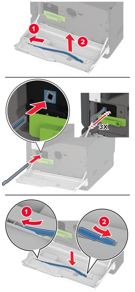 Remettez en place le racloir de la tête d’impression.Fermez la porte.