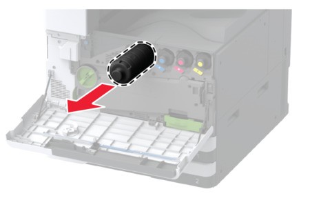 Déballez la nouvelle cartouche de toner, puis retirez tous les matériaux d’emballage.Secouez la cartouche de toner pour répartir le toner.