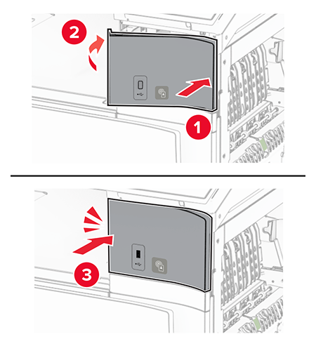 Retirez le capot du port USB inférieur.Si votre imprimante ne possède pas cette pièce, passer à l'étape suivante.