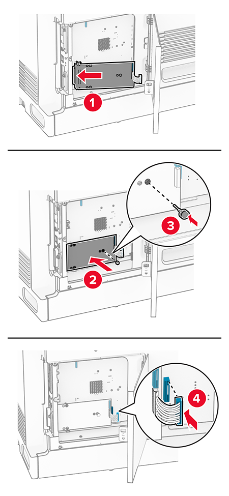 1ISP2Cavo ISP esteso3Staffa di montaggio4Viti a testa piattaFissare la staffa di montaggio alla scheda del controller finché nonscattain posizione.