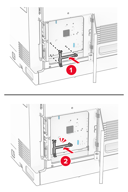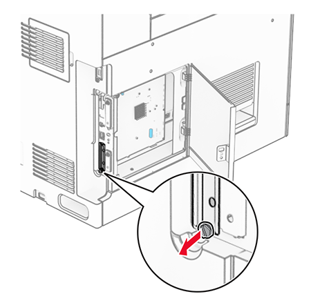 per evitare il rischio di scosse elettriche, se si accede alla scheda del controller o si installano periferiche di memoria o hardware opzionali dopo aver configurato la stampante, prima di continuare, spegnere la stampante e scollegare il cavo di alimentazione dalla presa elettrica. Spegnere le eventuali periferiche collegate alla stampante e scollegare tutti i cavi dalla stampante.