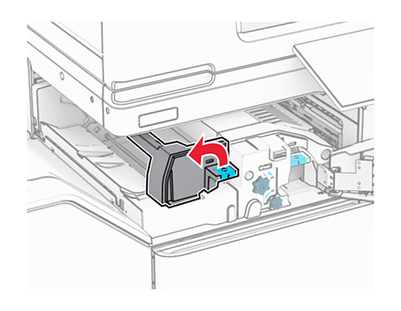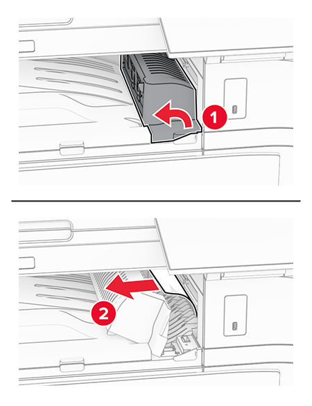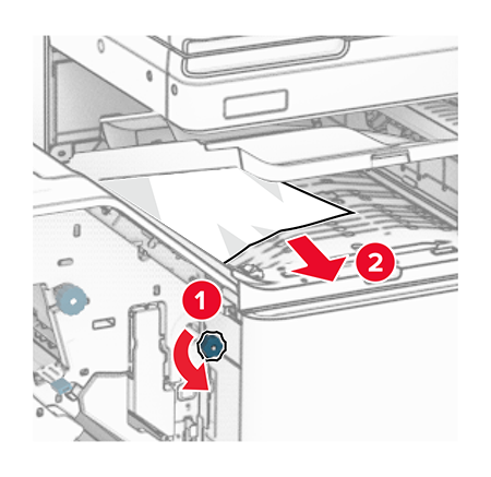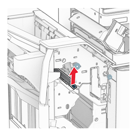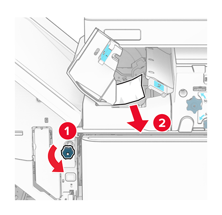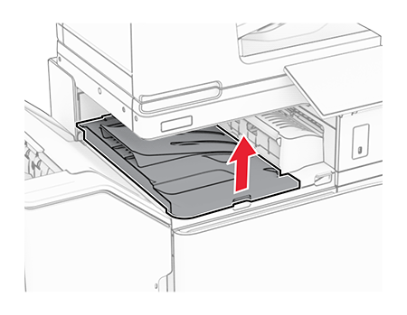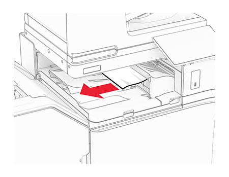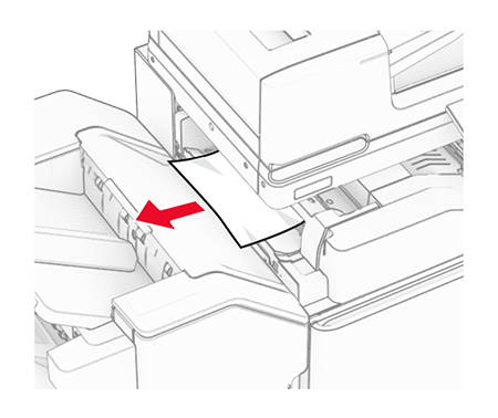 - Rimuovere la carta inceppata nello scomparto standard della stazione di finitura.accertarsi che siano stati rimossi tutti i frammenti di carta.