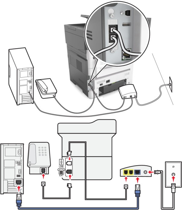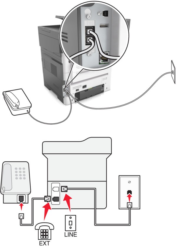 - Collegare il telefono analogico alla porta telefono della stampante.