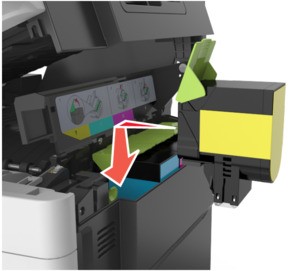 Allineare la nuova cartuccia di toner, quindi premerla verso il basso finché non è inserita correttamente.