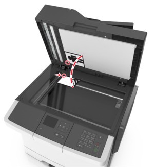 - Posizionare il documento con il lato stampato rivolto verso il basso sul vetro dello scanner nell’angolo con la freccia verde.