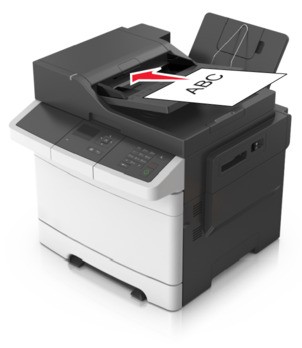 - Caricare il documento rivolto verso l’alto, inserendo per primo il bordo corto nel vassoio dell’ADF.