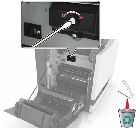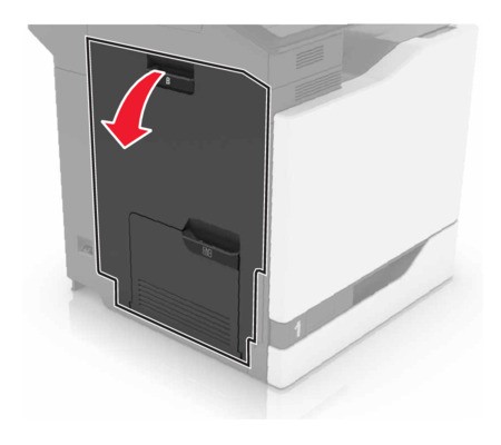 - Spegnere la stampante.Aprire lo sportello B.L’area interna della stampante potrebbe essere molto calda. Per evitare infortuni, lasciare raffreddare la superficie dei componenti prima di toccarli.