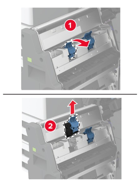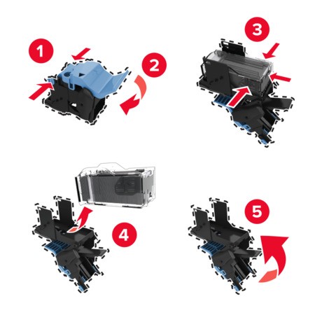 Rimuovere il supporto della cartuccia graffette usato.