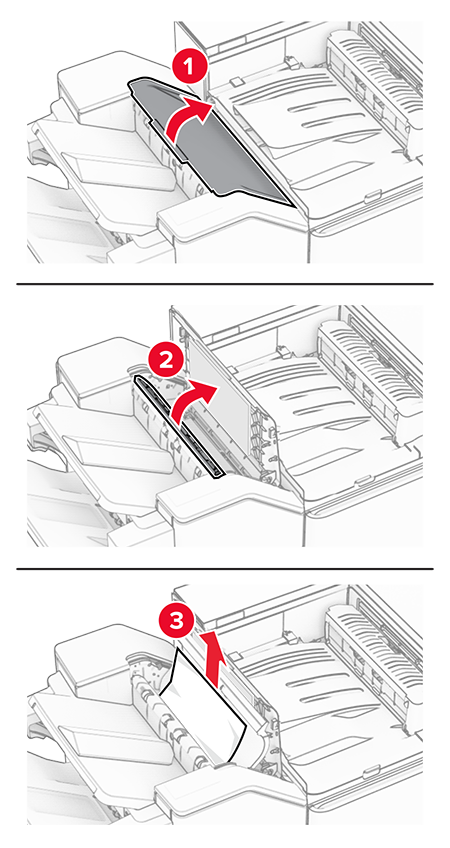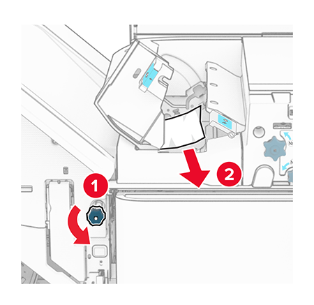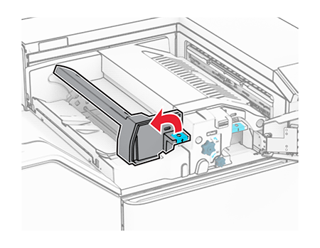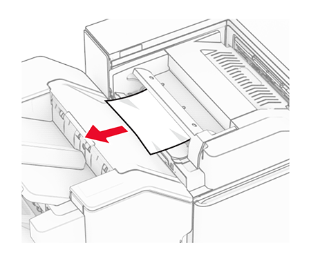 Rimuovere la carta inceppata nel fascicolatore con spillatrice e foratrice per continuare le operazioni stampa, cucitura e perforazione.
