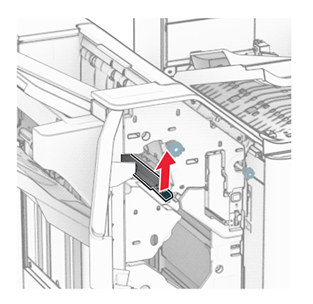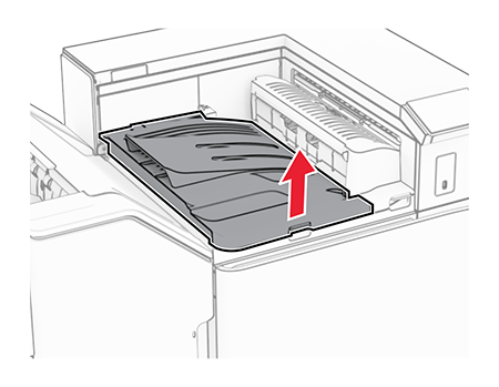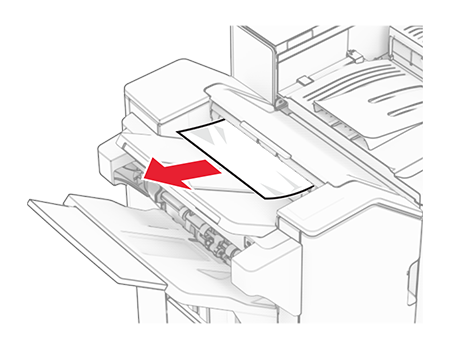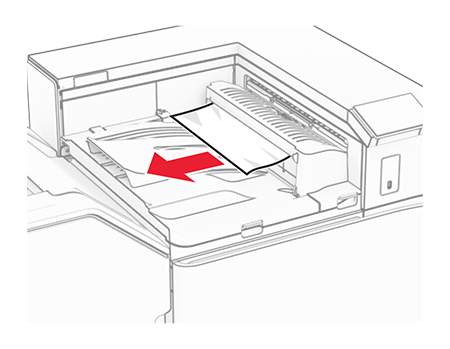 Rimuovere la carta inceppata nello scomparto standard della stazione di finitura.accertarsi che siano stati rimossi tutti i frammenti di carta.