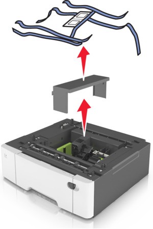 - Pak de optionele lade uit en verwijder vervolgens al het verpakkingsmateriaal en de stofkap.