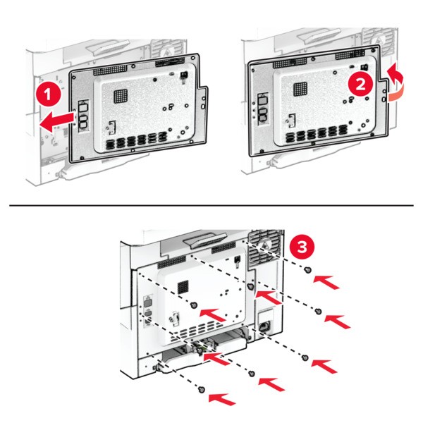Sluit klep B.Bevestig het schild van de controllerkaart en monteer vervolgens de schroeven.
